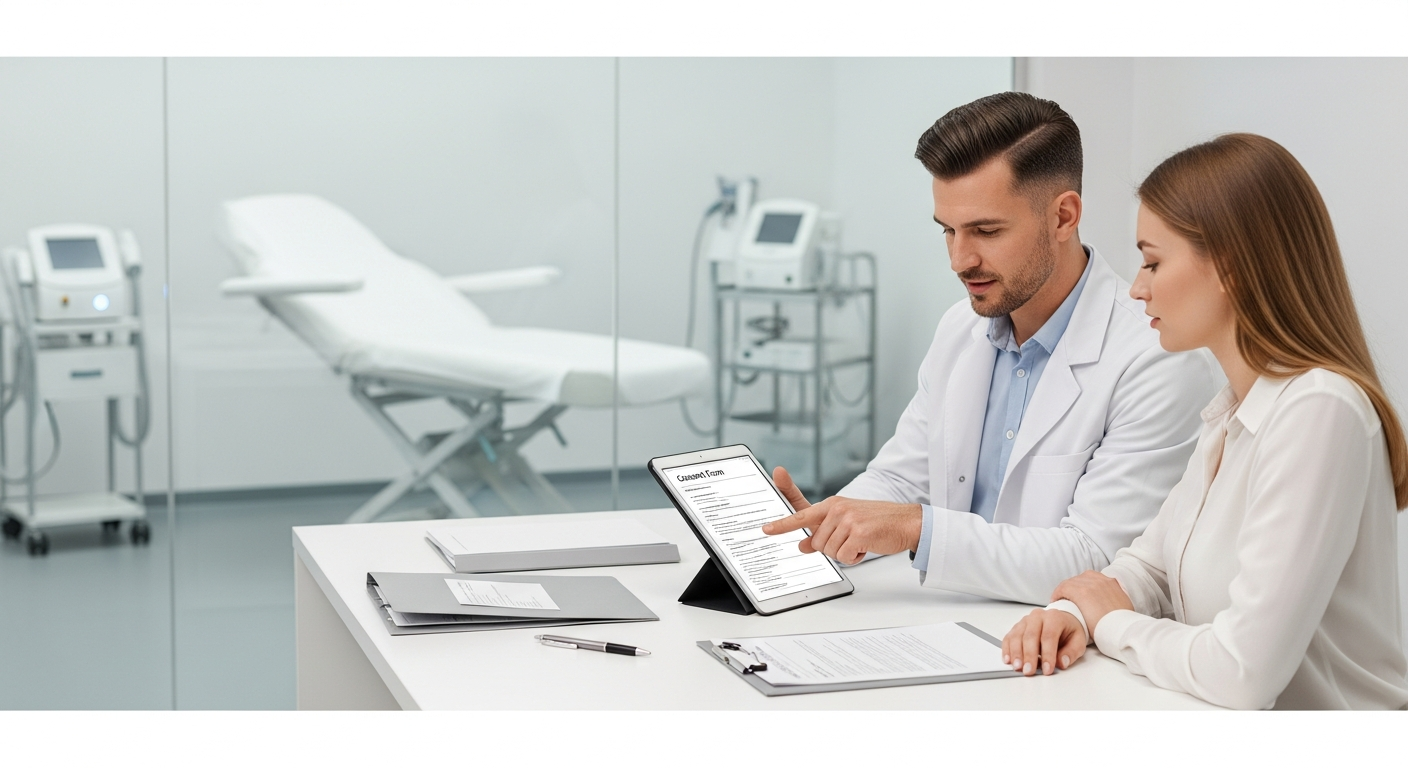 Standardized forms should be updated regularly to reflect current clinical guidelines. Every consent form must be treatment-specific rather than a general clinic waiver.